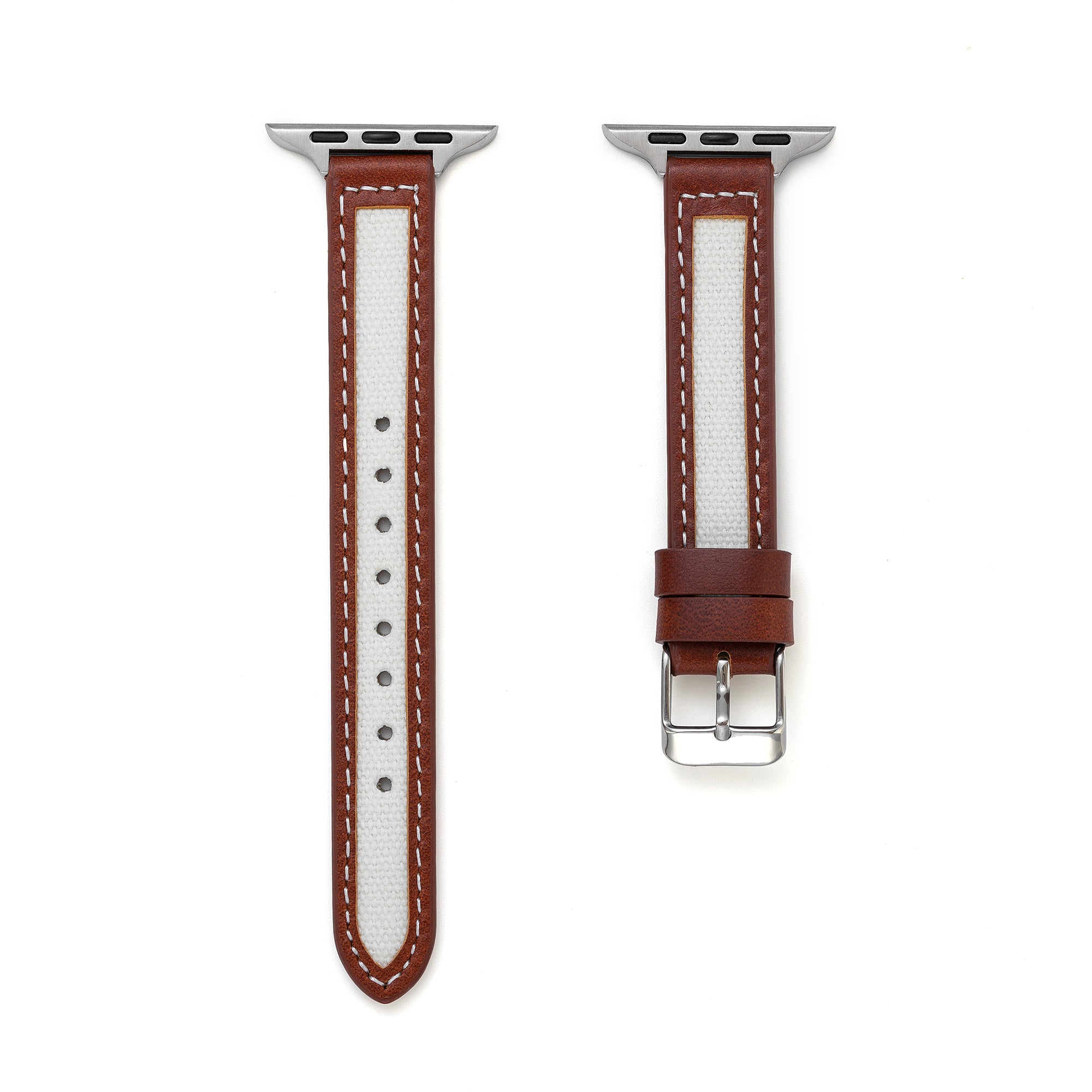 Two-Tone Canvas & Leather Watch Band